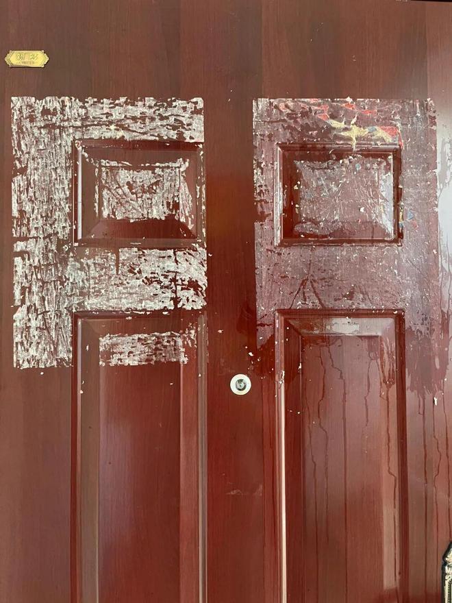 4、网友@尤可莉莉的家:我家入户门由于在装修刷乳胶漆的时候没有保护好,导致门饰面比猪肝色大门还要丑,实在忍不了。