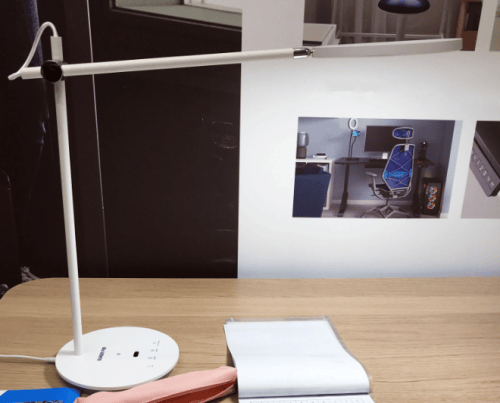 此外灯臂方面还运用了铝合金的材质,瞬间使得整体的视觉感提高了不少,此外灯臂上内嵌了旋转式触控圆盘,调节的过程中阻尼感不错,并且还配备了三重控光系统,光线柔和均匀,没有明显暗区,最大可照亮约1.2米的桌面,光线均匀度达1.53。不过长时间用高亮模式,可能会有轻微频闪。