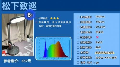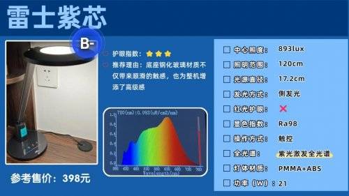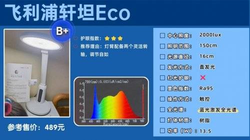 简介:3900K-5700K色温可调,侧发光,蓝光较高,护眼效果中规中矩