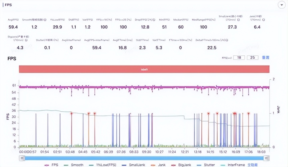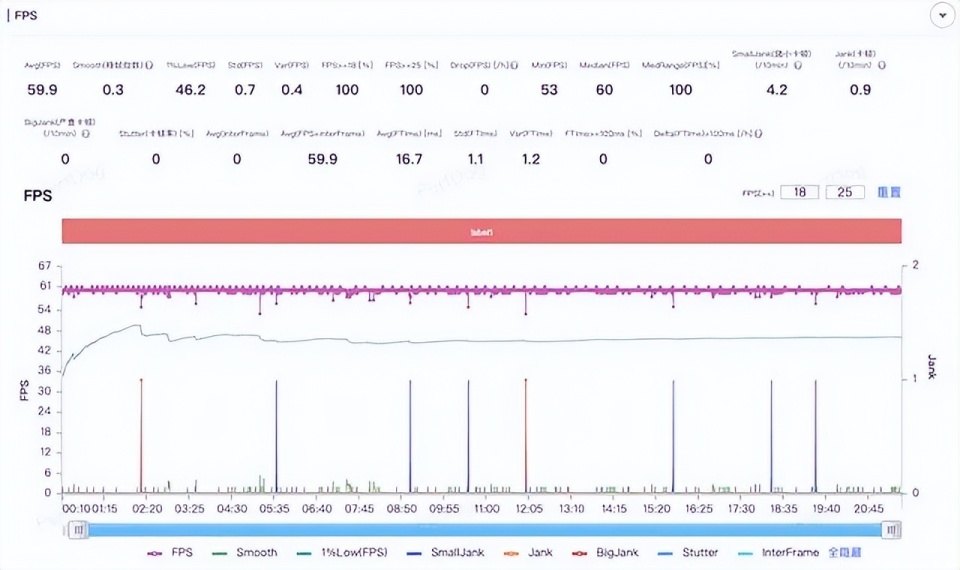 游戏测试部分,我们选取《原神》作为测试项目,将画质、特效全部拉满后开启60FPS模式进行跑图测试,由Perfdog测得平均帧率为59.9FPS,帧率曲线十分平稳,游戏过程中没有出现卡顿情况。