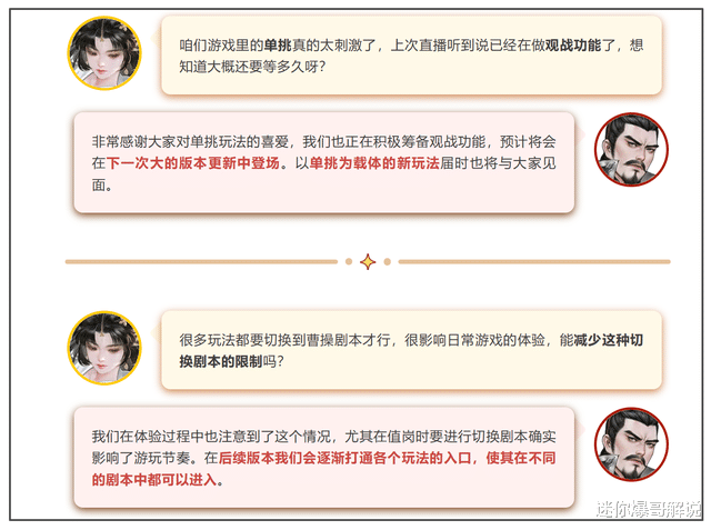 1.2新版本曝光后,玩家已经十分期待,而官方表示:后续还有海量内容筹备中,包括东吴线剧情,新武将孙尚香,单挑增加“观战”功能等等,都已经在紧张制作中。