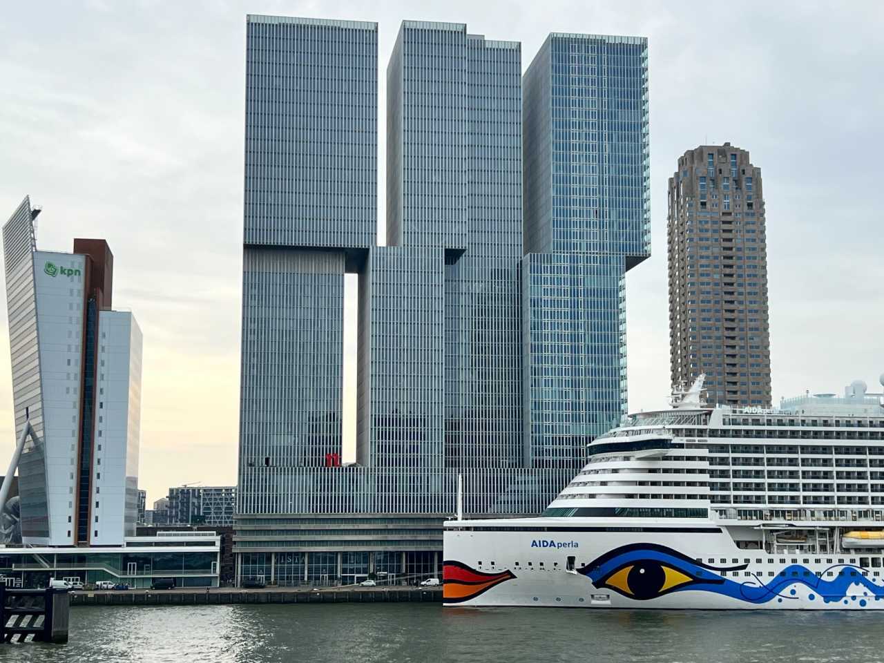 爱达号邮轮的旁边就是以城市命名的 鹿特丹 大厦