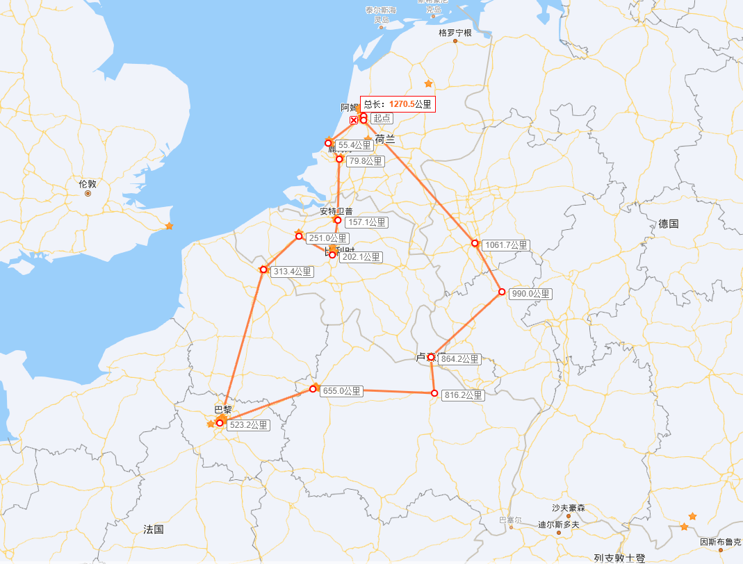 南京 —(厦航) 厦门 —(厦航) 阿姆斯特丹 —(火车) 海牙 —(轨交) 鹿特丹 —(大巴) 安特卫普 —(火车) 布鲁塞尔 —(火车) 根特 —(火车) 里尔 —(大巴) 巴黎 —(大巴) 梅斯 —(火车) 卢森堡 —(大巴+火车) 科隆 —(火车) 阿姆斯特丹 机场—(厦航) 厦门 — 南京