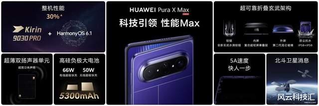在影像、续航和性能等方面,华为Pura X Max也实现了全面进阶。第二代红枫影像搭配姿势推荐、灵感转盘等创新功能,为用户带来所见即所得的轻松出片体验。麒麟9030 Pro系列芯片与鸿蒙操作系统 6.1进一步提升了整机的流畅度和高负载能力;此外,5A通信、5300mAh大电池、超薄双扬声器单元等配置,共同将华为Pura X Max塑造为一台全能无短板的大阔折旗舰。