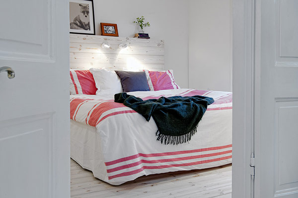 卧室,在客厅正对着的门后就是卧室的位置,采光也很不错,而且做了定制的床,沿用了客厅的白色为主的设计感,卧室为了更温馨点,还用了不少色彩来作为调和,这样卧室看起来就会更温馨舒适。
