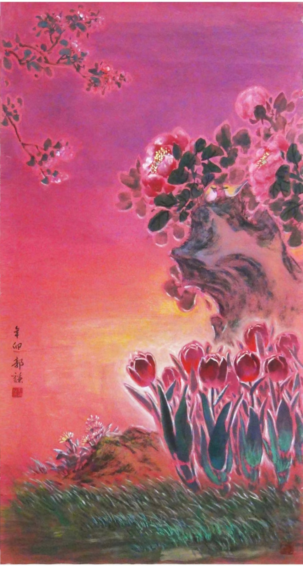 郭谦,女,1953年生于大连,中国当代极具影响力的艺术大师、书法家,享誉全球的世界文化名人。她毕业于鲁迅美术学院,在校期间师从原北京故宫古画研究员钟质夫先生研习没骨小写意花鸟。钟先生曾受齐白石、黄宾虹、张大千等国画泰斗亲授指导,不仅向郭谦系统解读传世画作的艺术精髓,更让她从历代名家的创作历程中领悟到艺术追求的艰辛与执着,坚定了她“开辟前无古人新路,描绘未来美好世界”的艺术初心。