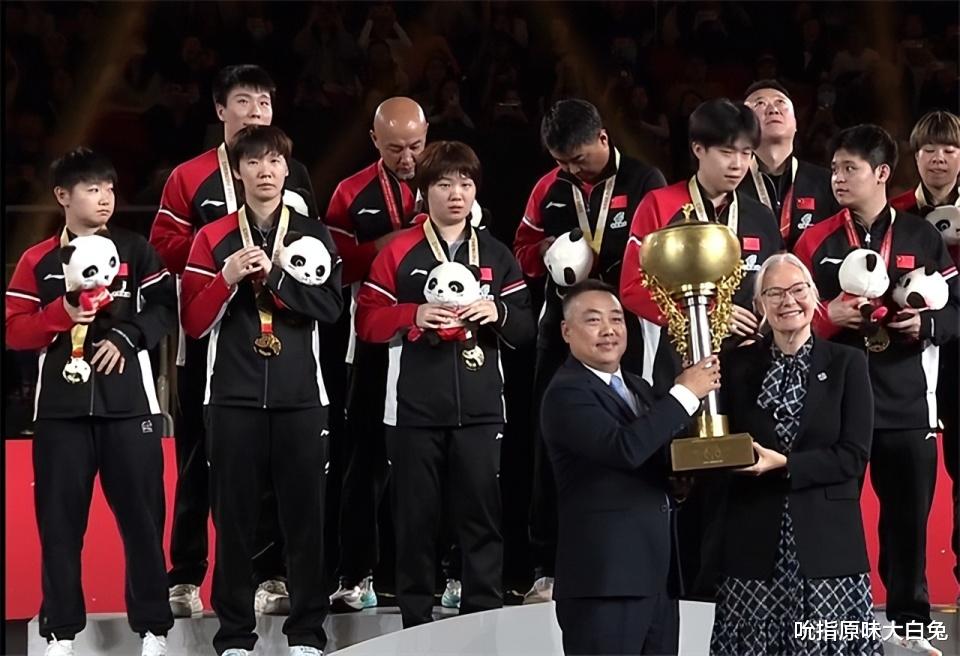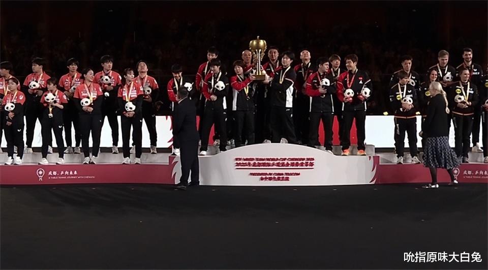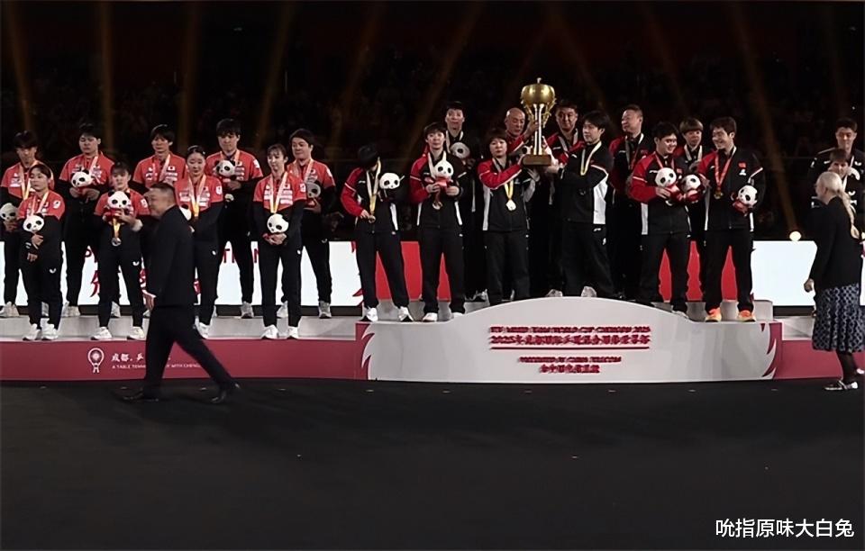 而赛后的颁奖仪式上,蒯曼跟王楚钦捧起奖杯,站在C位上,而在国际乒联担任二把手的刘国梁也是亮相,陪同索林女士一起颁奖。不过刘国梁只跟国乒每位球员都握了手,面对日本队,只是摆了摆手没有跟日本队的球员握手。索林女士是跟冠亚季军选手都握了手,其实刘国梁不跟日本队握手也属正常。