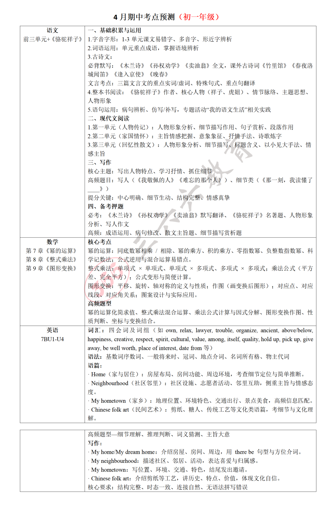 后记:期中考试不是“题海战”,而是“精准战”。