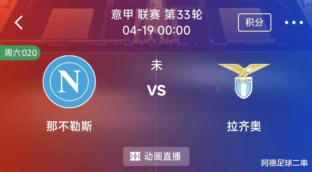 020意甲 那不勒斯 VS 拉齐奥 比赛时间:2026-04-19 00:00:00 球场:马拉多纳球场