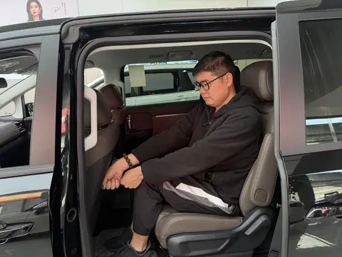 销售先带我试驾,这透明底盘还是挺实用的,对于那么长的MPV来说实用性很棒。我先坐第二排体验感受。