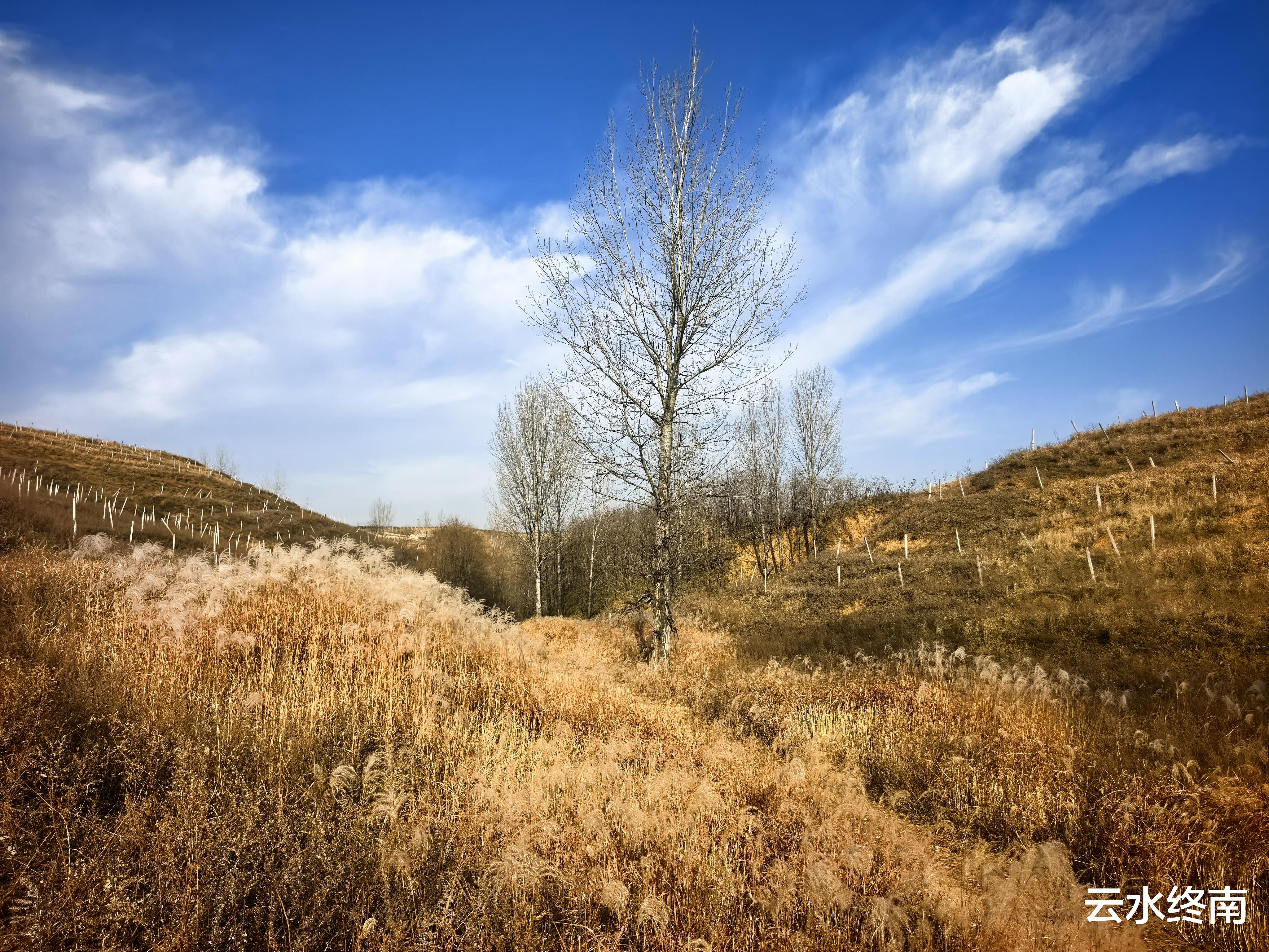 靠近路边就有芦花,不过不算太多,沿着小路穿过土塬才是大片大片的芦花。