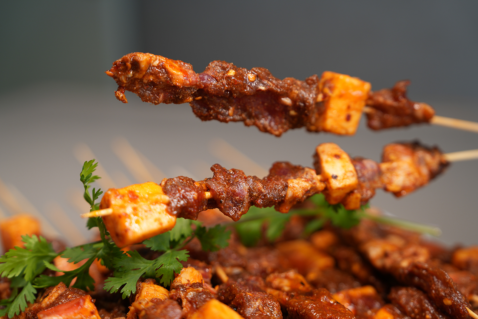 除了特色火锅,盛香缘骆驼驿站还有特色烤肉串和骆驼色炒菜。烤肉串经过精心腌制,在炭火上烤制得外焦里嫩,香气扑鼻。骆驼色炒菜则将骆驼肉与各种蔬菜巧妙搭配,营养丰富,口味独特。