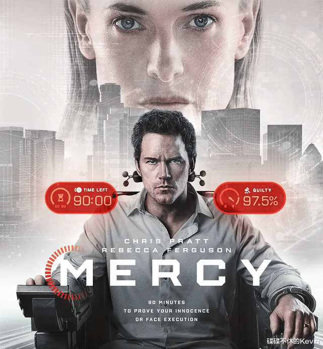 不同于其他好莱坞商业科幻大片,电影《极限审判》的时空背景被设定在2029年的洛杉矶,电影中的大部分场景和现实中的世界几乎一模一样,除了那个被称为“Mercy”的人工智能审判系统。与当年《少数派报告》异曲同工的是,克里斯·帕拉特扮演了一位参与创建这套人工智能系统的警探,当他的妻子在家中被谋杀之后,他迅速被人工智能锁定为犯罪嫌疑人,并且在数字化法庭上接受审判。