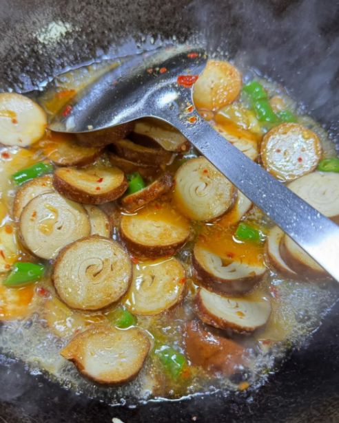 长沙的捆鸡不是鸡,是一种豆制品。用豆腐皮紧紧卷成圆柱形,用纱布捆紧了煮熟,然后切成薄片,拌上辣椒油、蒜末、生抽和香醋。捆鸡切面像树的年轮,一圈一圈的,每一圈都吸饱了料汁。咬一口,韧劲十足,越嚼越香,比肉还好吃。