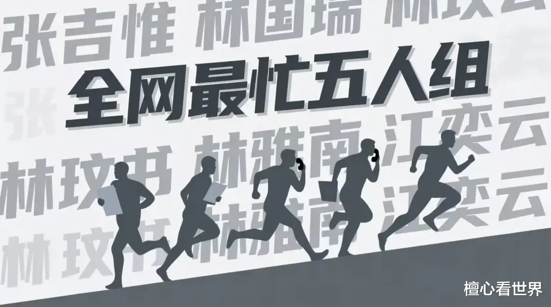 最近有几个人火了,被称为“最忙五人组”,这五个人分别是“张吉惟、林国瑞、林玟书、林雅南、江奕云”,他们的名字出现在各种不