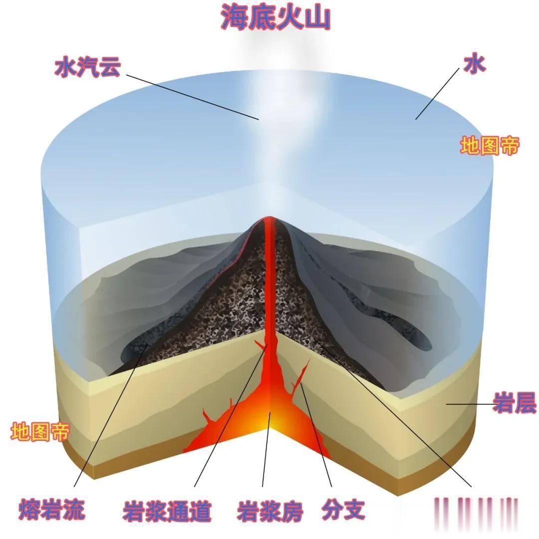 海底火山喷发也分具体情况,如果海水较浅、水压较低,水蒸气和熔岩常常会喷出水面,炽热的岩浆与冰冷的海水发生剧烈反应,伴随剧烈的爆炸,和陆地火山喷发有所不同。