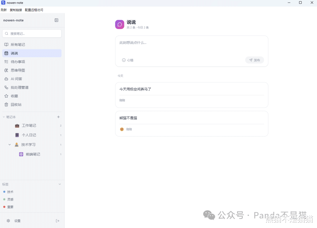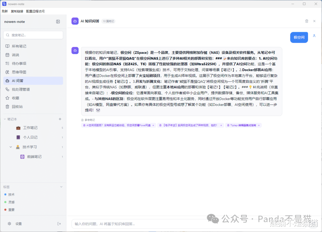 写在最后nowen-note算是熊猫折腾 Docker 这三年来,发现的最适合 NAS 用户"养老"的笔记软件了。