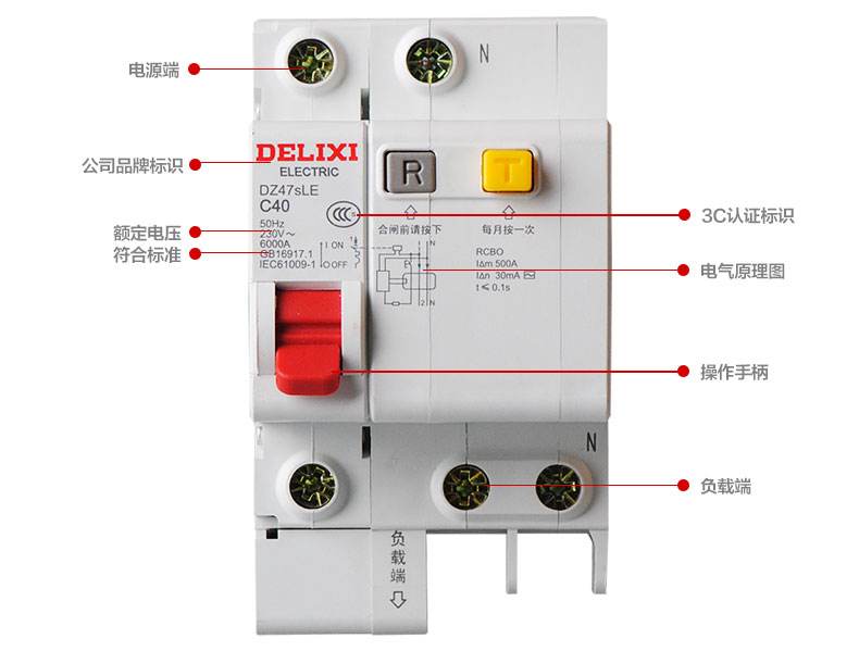 2、漏电保护器标有负载侧和电源侧时, 应按规定安装接线,不得反接。