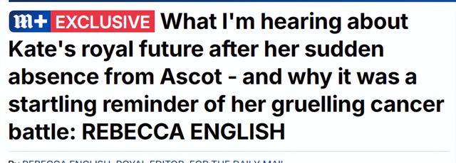 凯特王妃6月18日缺席皇家赛马会,一时甚嚣尘上,而凯特原本已经署名参加,却临时被抹去名字令人浮想联翩,期间更传出凯特病重等。