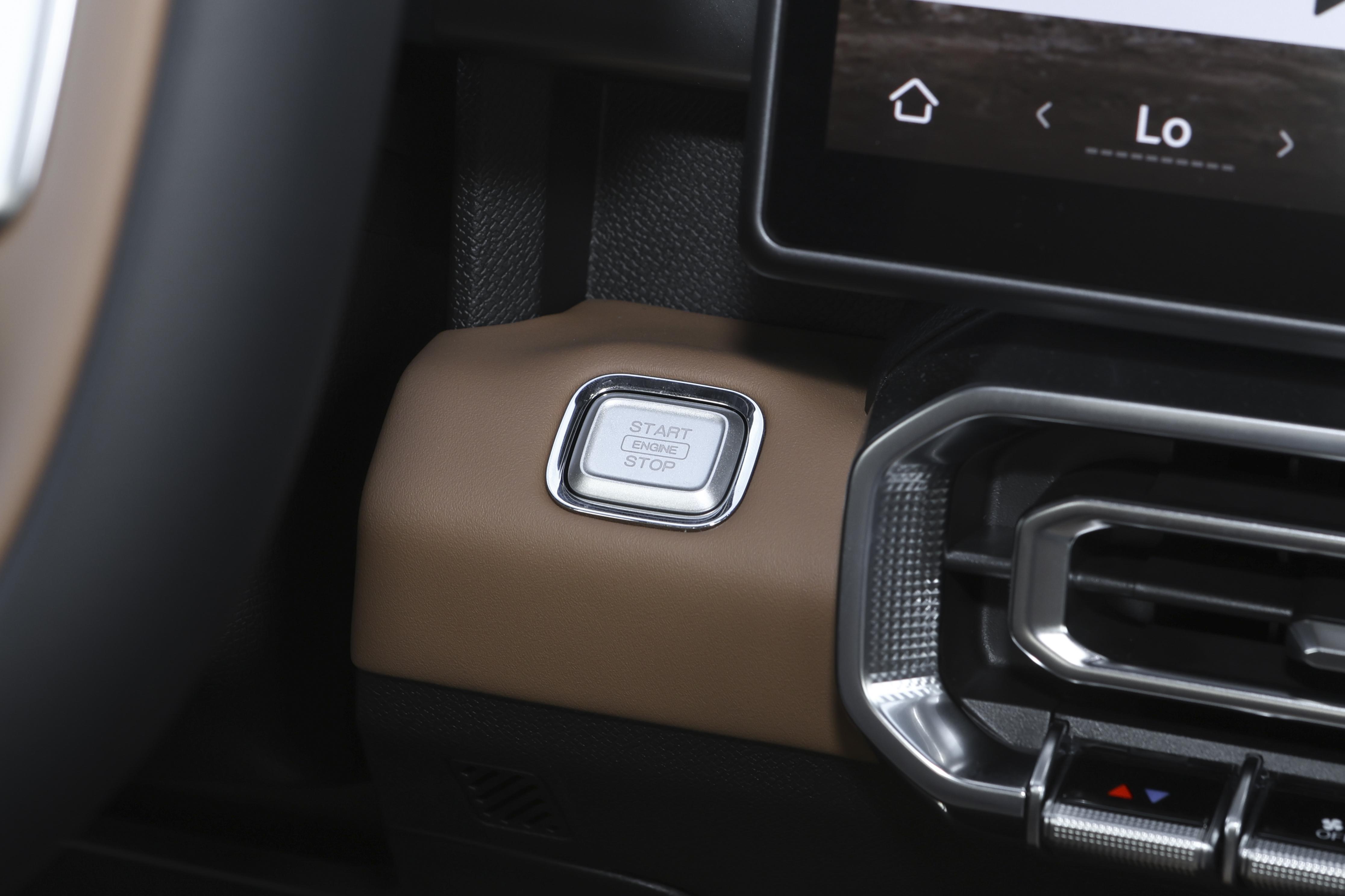 19 英寸的多辐轮毂比 18 英寸显大气,搭配的 AT 轮胎胎纹深,在泥地里抓地力不错,但日常开在柏油路上,胎噪没想象中大。轮眉是外扩的,孩子总喜欢蹲在旁边数 “轮眉上有几个小孔”,其实那是排水孔,下雨后不会积水。