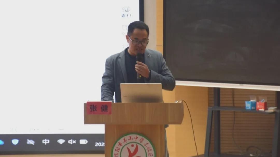 信阳市教育教学研究室初中数学教研员张健老师对两节课做出点评后,带来了《一般观念引领下的教学设计与实施——以分式的乘除法为例》的精彩报告。他深入浅出地阐释了如何以“运算的通性通法”这一“一般观念”统摄单元教学,让参会教师深刻体会到“观念统领”对于实现知识结构化的巨大力量。