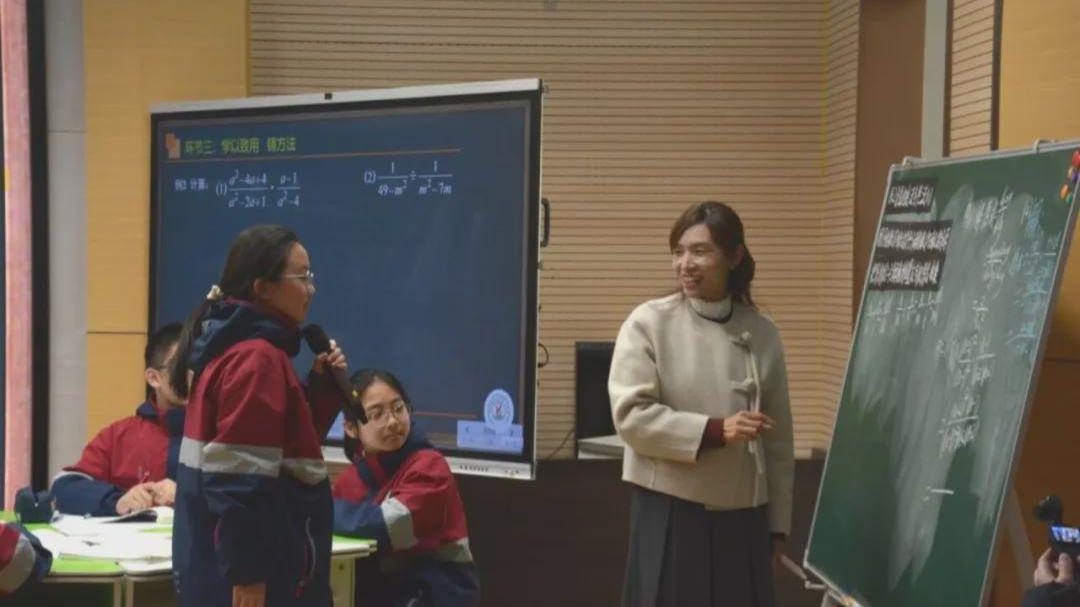 围绕《分式的乘法与除法》(第一课时),三门峡市第二中学的刘阳阳老师与信阳市羊山中学的潘玉老师同台切磋。两位老师均注重分数乘除法的类比迁移,善于运用情景教学,鼓励学生发散思维,课堂有深度。不同的教学智慧,从不同方面培养了学生的核心素养。