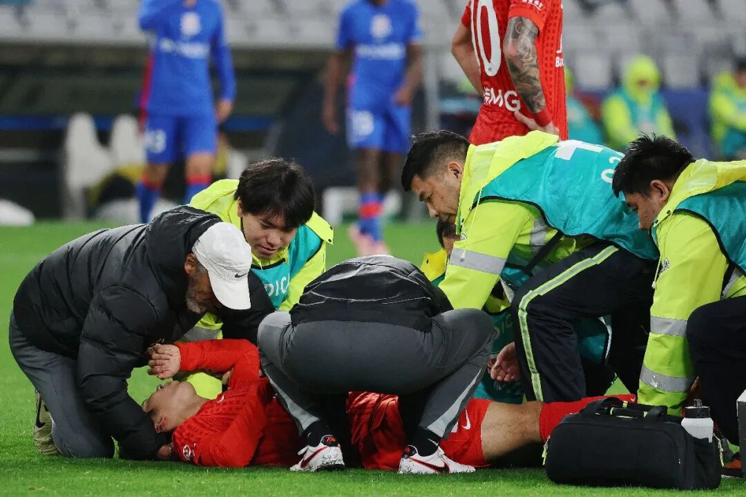 在队友和队医的暗示下,杨世元本来捂着大腿的手,慢慢移到了头上,跟裁判和队医说自己头疼、不舒服。之后,海港的教练组马上跟主裁判李海新申请,用脑震荡的特殊规则换人。李海新全程看着杨世元从腿疼变成头疼的过程,脸上露出了无奈的笑容,但最后还是同意了换人。第77分钟,傅欢替补上场,上海海港保住了11个人的完整阵容,没有陷入少一个人踢球的被动局面。这个操作当场就遭到了上海申花教练组的强烈反对,可也改变不了结果,一场好看的德比大战,彻底偏离了比赛本身该有的样子。