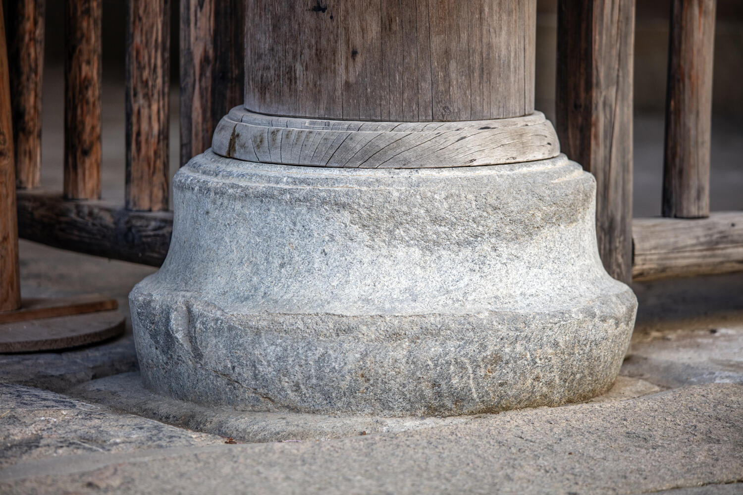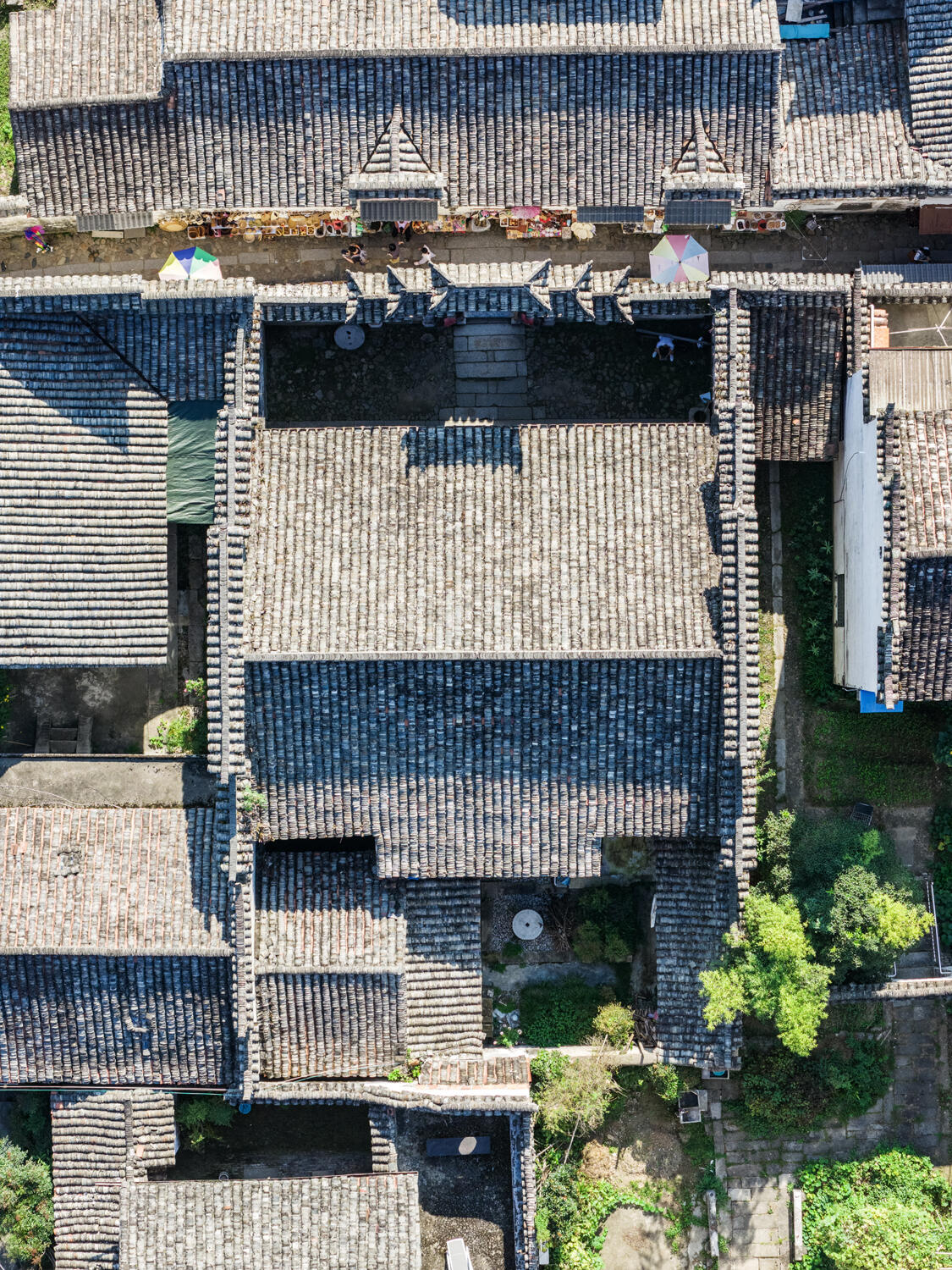 推开厚重的木门,穿过门楼,一道天井将天光引入院内,照亮了其后的三间厅屋。厅内十六根楠木柱子笔直挺立,历经数百年依然坚固如初,木质的温润与纹理在时光中沉淀,散发出淡淡的清香。楠木自古便是皇家与达官贵人追捧的珍贵木材,质地坚硬、耐腐蚀、防虫蛀,用楠木作为厅屋立柱,不仅彰显了家族的财力,更体现了对建筑品质的极致追求。这些楠木柱承载着屋顶的重量,与梁架、斗拱相互配合,构成了稳固的建筑骨架,即便历经朝代更迭、风雨侵袭,依然屹立不倒,成为家族兴衰的见证者。