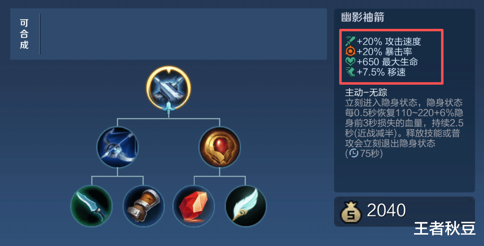 查看幽影袖箭的基础属性,没有物理攻击加成!注定了他只能是一件单纯的保命装备,而不是一件能替换其他装备的输出装备。相比复活甲的复活和150点双抗,相比名刀的1.75秒无敌和75物理攻击,幽影袖箭基本属性打不过正常输出装,保命属性也不如上述两件装备,自然就冷门了。
