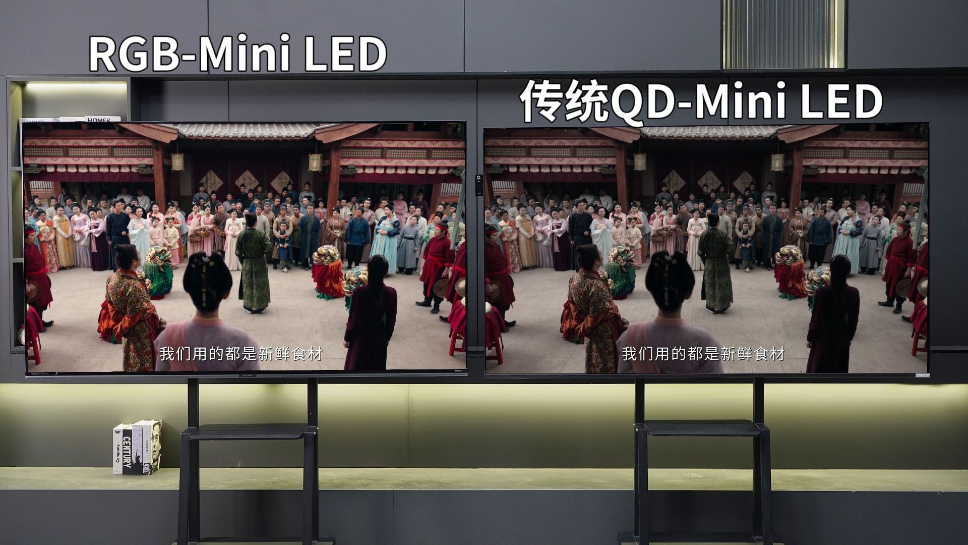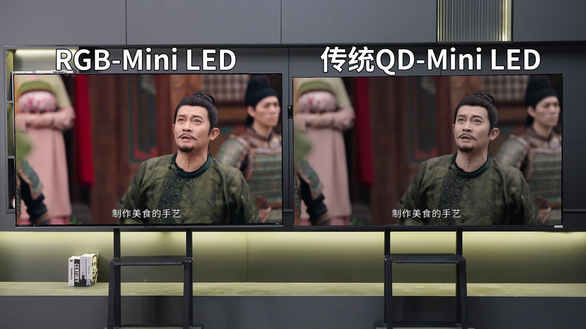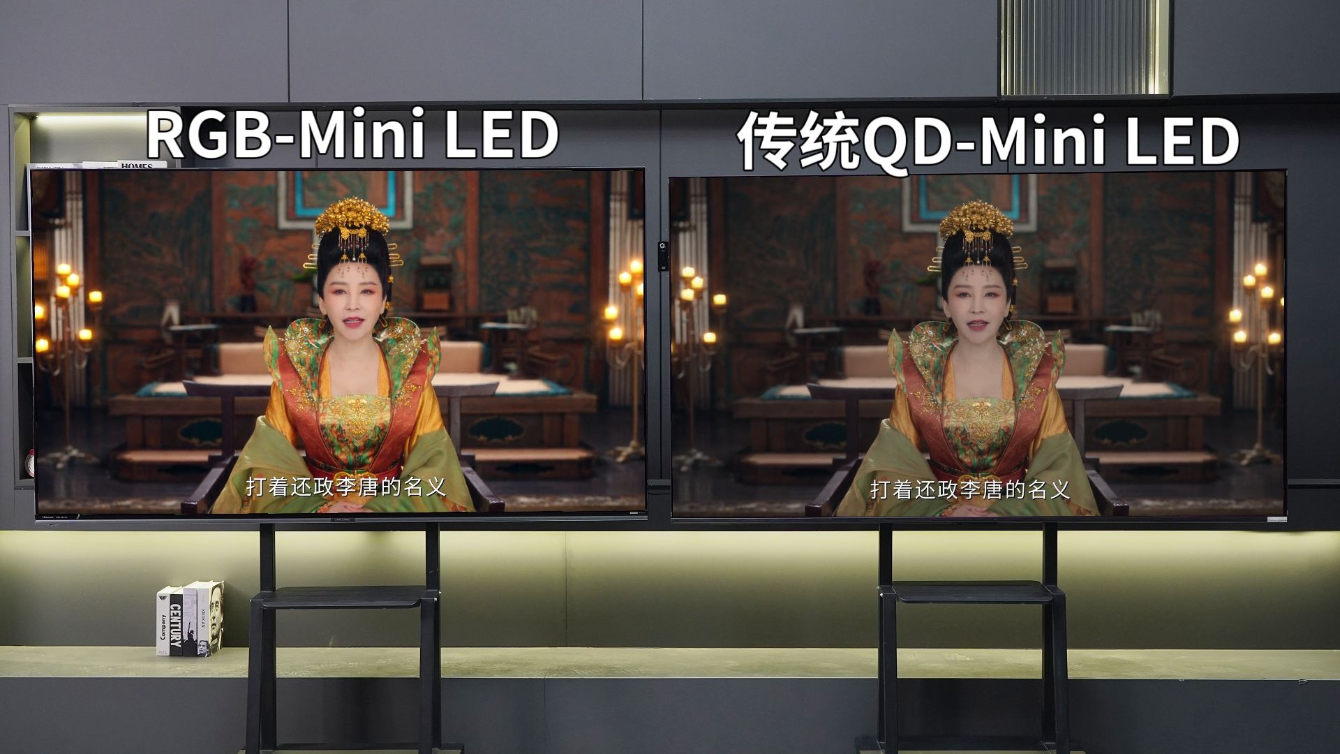 为啥差别这么大?我仔细研究了一番,发现关键在于海信E8S Pro用的是最新代的液晶显示技术——RGB-Mini LED技术。它直接用红、绿、蓝三原色作为独立背光源,从光源开始就保证了色彩纯净。而传统电视大多用单一白色或蓝色背光,需要借助量子点或荧光粉进行二次色彩转换,不仅容易颜色不准,光效和均匀度也跟不上。