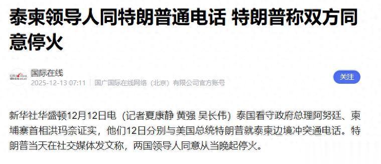 十二号特朗普在社交平台显摆,说自己打个电话就让泰柬停火,还把边境士兵踩雷的事不当回事地说成 “意外”,高调往自己脸上贴外交功劳。