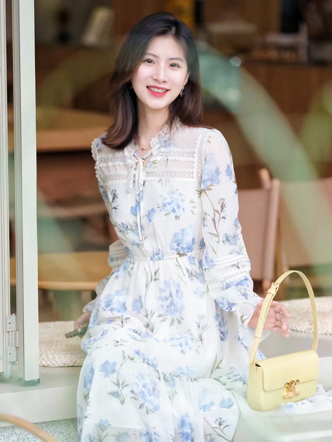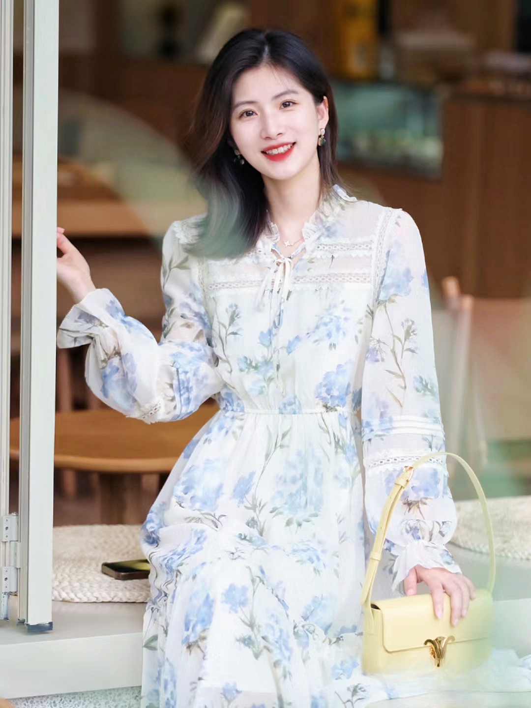 雪纺面料给这款连衣裙增添了轻盈飘逸的质感。当微风拂过时,雪纺面料会随着风的轻抚而舞动,给人一种如仙女般的感觉。无论是在秋季的阳光下还是在晚会的灯光下,它都能让你成为众人瞩目的焦点。
