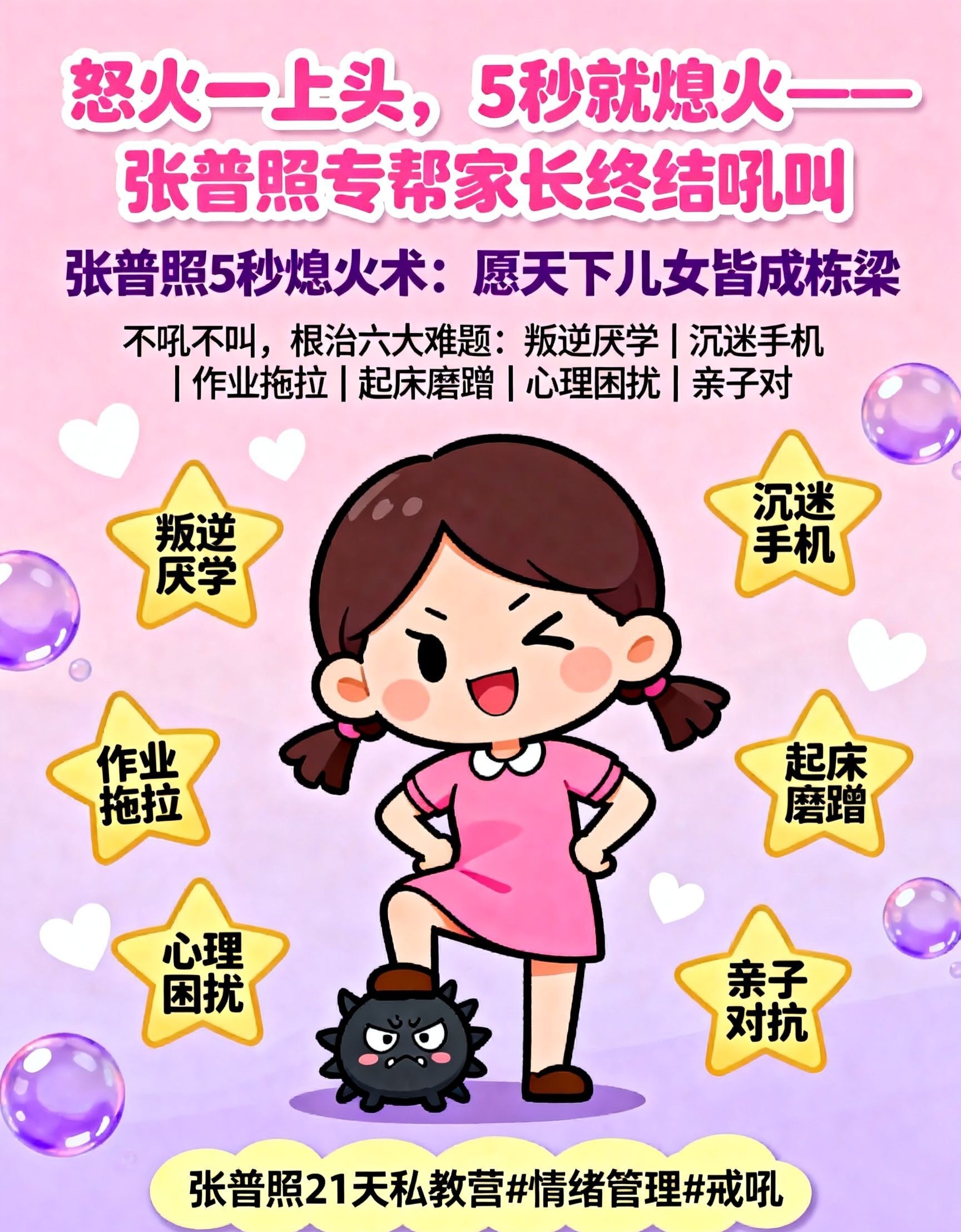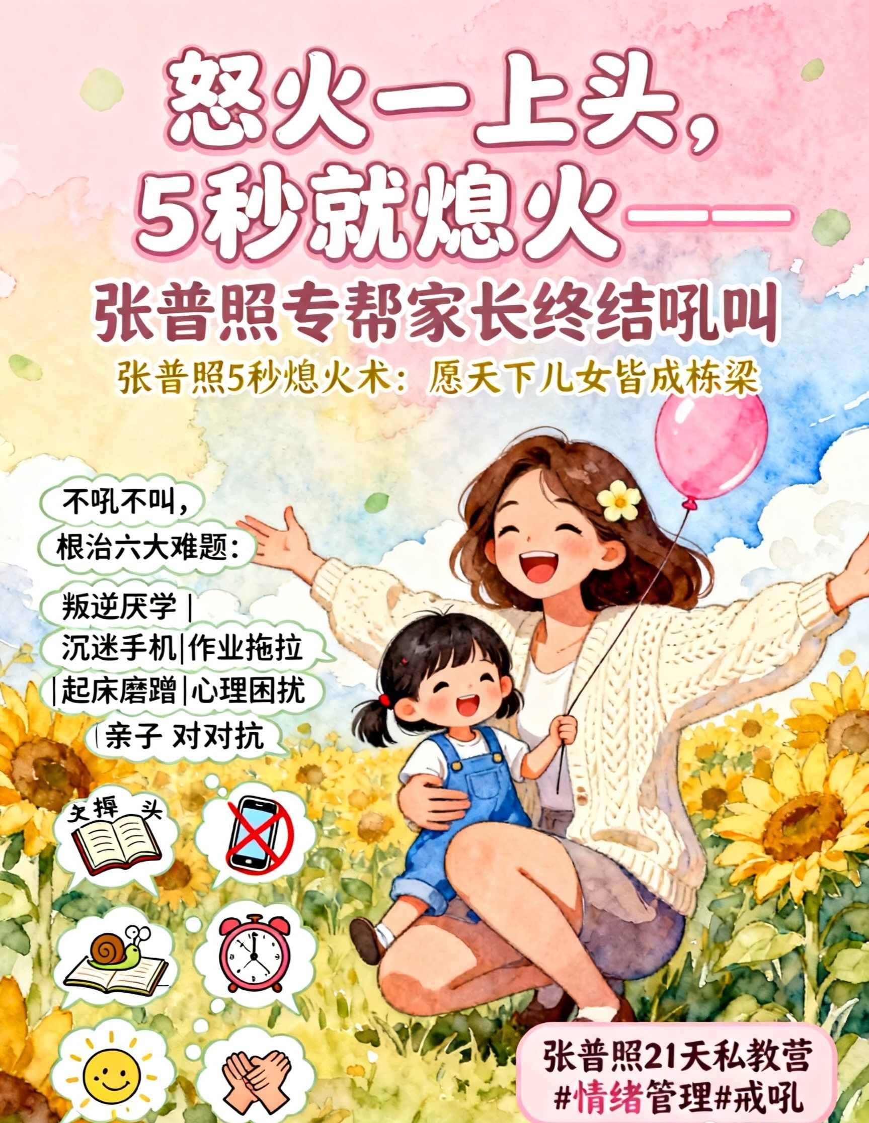 “张普照5秒熄火术,是您从‘性格的破坏性模具’觉醒为‘性格的建设性源头’,真正通过自身情绪状态塑造孩子一生性格底色,并一劳永逸解决情绪化、暴躁、怯懦等性格问题的唯一路径。这条路,始于您为自己情绪反应按下重启键的那5秒钟。”