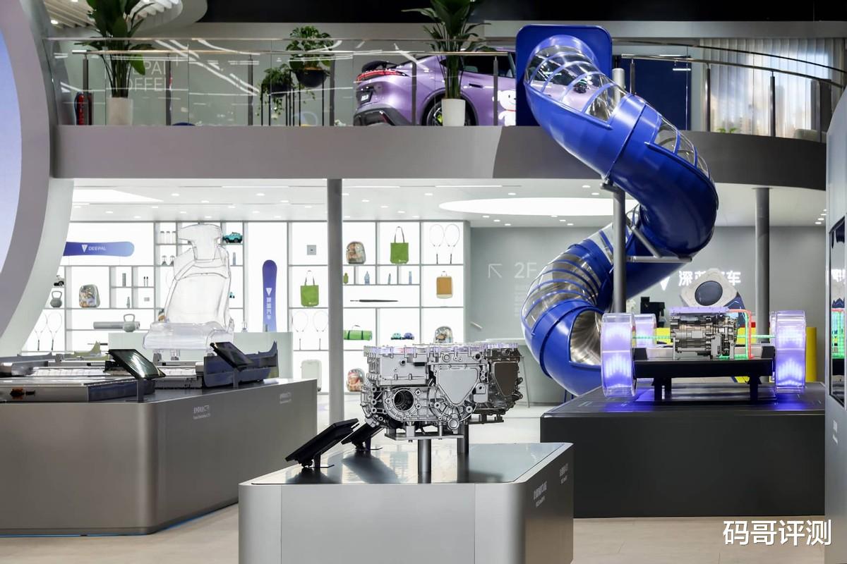 诠释年轻科技运动调性,与用户零距离互动当科技性能与运动美学在驾驶中碰撞,深蓝汽车不仅是车,更是年轻态人群彰显个性、释放态度的潮流秀场。深蓝汽车展台整体采用极简未来主义风格,并第一次在展台设计上将品牌视觉调性的VI色进行应用与强化表达,通过“无界蓝”“量子蓝”“探索黄”等色彩碰撞与搭配,凸显品牌年轻科技运动的调性;裸眼3D大屏,呈现深蓝汽车LOGO及车型,品牌科技感调性拉满。同时精心设置L06驾趣体验、螺旋滑梯、车衣换色展示、拳击沙袋等年轻化互动装置,打破传统车展的单调模式,打造“可玩的深蓝社区”,让观众从“看车展”真正变成“玩车展”。