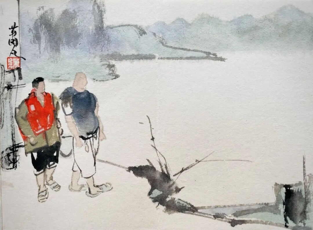 程海暮色/34 x 43cm /绢本·水墨/2025年