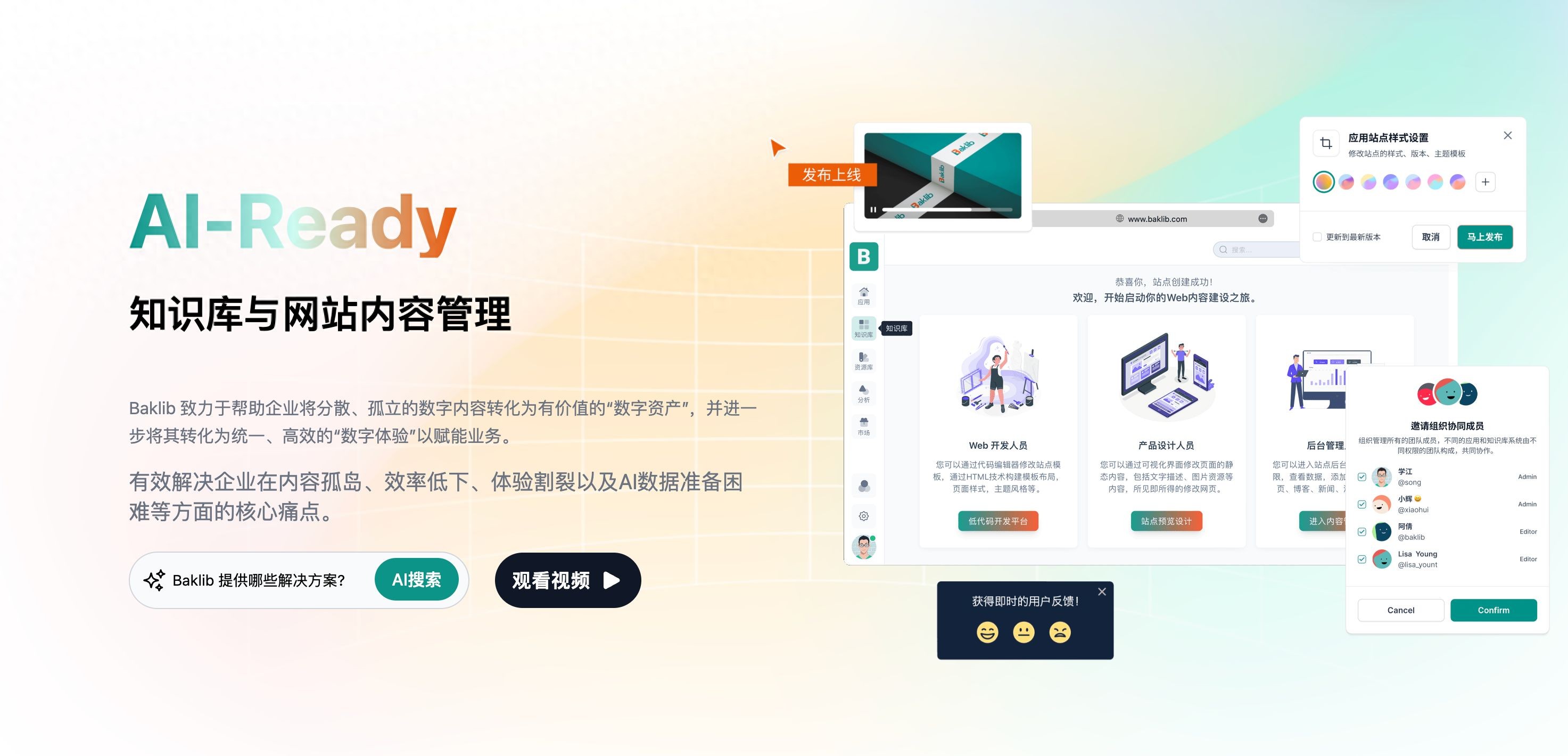 Baklib 的企业级解决方案Baklib 针对企业知识管理与数字内容管理的痛点,提供全面的智能化平台支持: