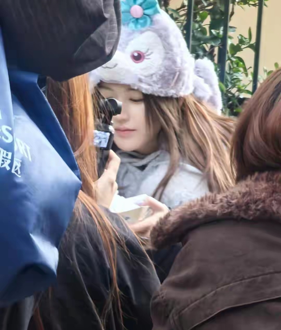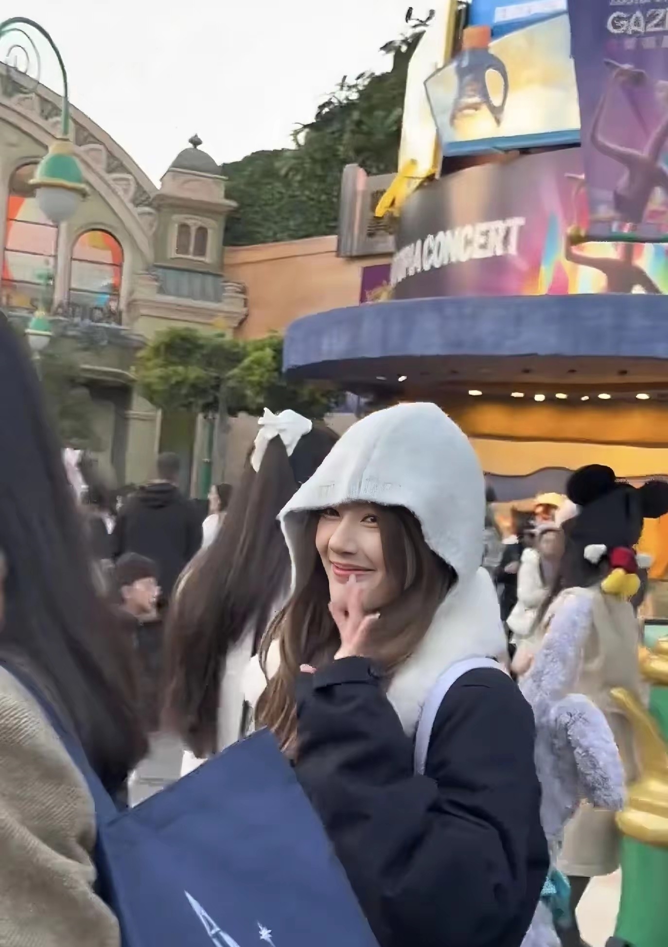 值得关注的是,她巧妙地将个人风格与乐园主题相融合——头戴星黛露主题的浅紫色毛绒帽,搭配同系列玩偶背包。这种“主题式穿搭”既不刻意夸张,又恰当地呼应了乐园氛围,展现出年轻艺人平衡时尚感与场景感的审美能力。这类造型细节,往往比华丽的礼服更能在社交平台引发话题与模仿风潮。