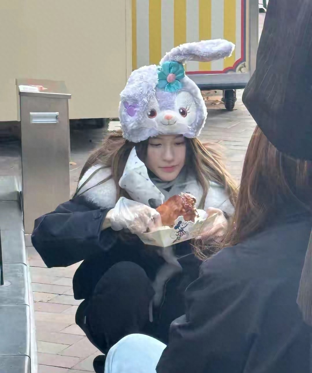 在游客偶遇的描述中,赵露思呈现出自然的生活状态:她坐在路边专注享用乐园火鸡腿,嘴角沾上酱汁也毫不在意,还主动向认出她的游客微笑致意。这种“不完美的真实感”恰恰成为了她观众缘的重要来源——在过度包装的娱乐圈生态中,能够坦然展露生活化一面的艺人,往往更容易获得公众的情感认同。