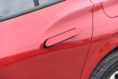 外观设计合年轻人胃口,家用开出去也体面。溜背轿跑造型不是那种夸张的运动风,线条流畅,看着低趴却不小气,邻居路过常问这车是不是要二十好几万。八边形黑色中网比老款精致,鳞甲装饰凑近看有质感,不廉价。分体式LED大灯白天是细细的日行灯,晚上点亮后层次分明,照明范围宽,下雨天也看得清楚。车身侧面的隐藏门把手是个实用设计,按一下自动弹出来,关上门和车身齐平,洗车不用担心藏脏东西。18寸轮毂配红色卡钳,停在路边比小区里的凯美瑞、帕萨特看着有活力。尾巴上的贯穿式尾灯晚上亮起来是一整条光带,没有断点,双边排气是真的,不是装饰,启动时能听到点声浪,有气势还不吵。新出的紫韵灰、金属蓝这些颜色挺实用,上班开不浮夸,周末带家人出去玩也合适,紫韵灰傍晚被灯光照着,颜色有层次,家里人都觉得好看。