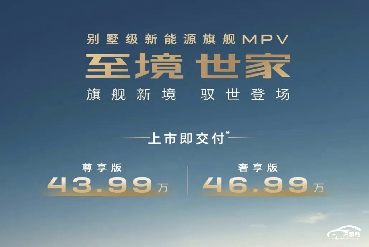 近日,别克高端新能源子品牌至境的旗舰MPV——至境世家正式上市。新车共推出尊享版和奢享版2个配置版本,官方指导价分别为43.99万元和46.99万元。
