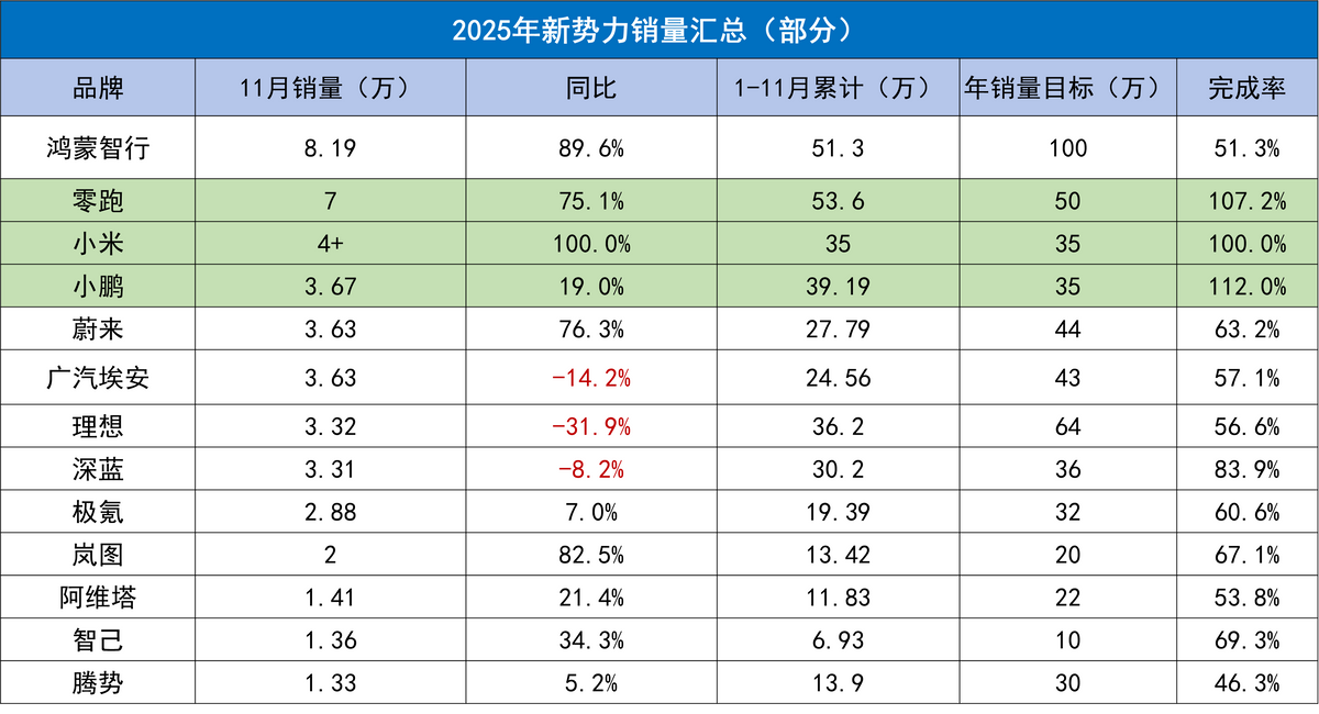 年度交付目标方面,鸿蒙智行、零跑、小米等几家喊得最响。截至目前,各家达成率如何呢?显然,“遥遥领先”恐怕要食言了。