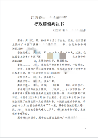 2023 年至 2024 年,5 户居民提起行政赔偿诉讼,德兴市执法部门、上饶市中级执法部门裁定存在争议,未体现《国家赔偿法》惩戒性,违法低成本甚至无成本违法,可能导致行政执法机关今后多采取类似违法手段。