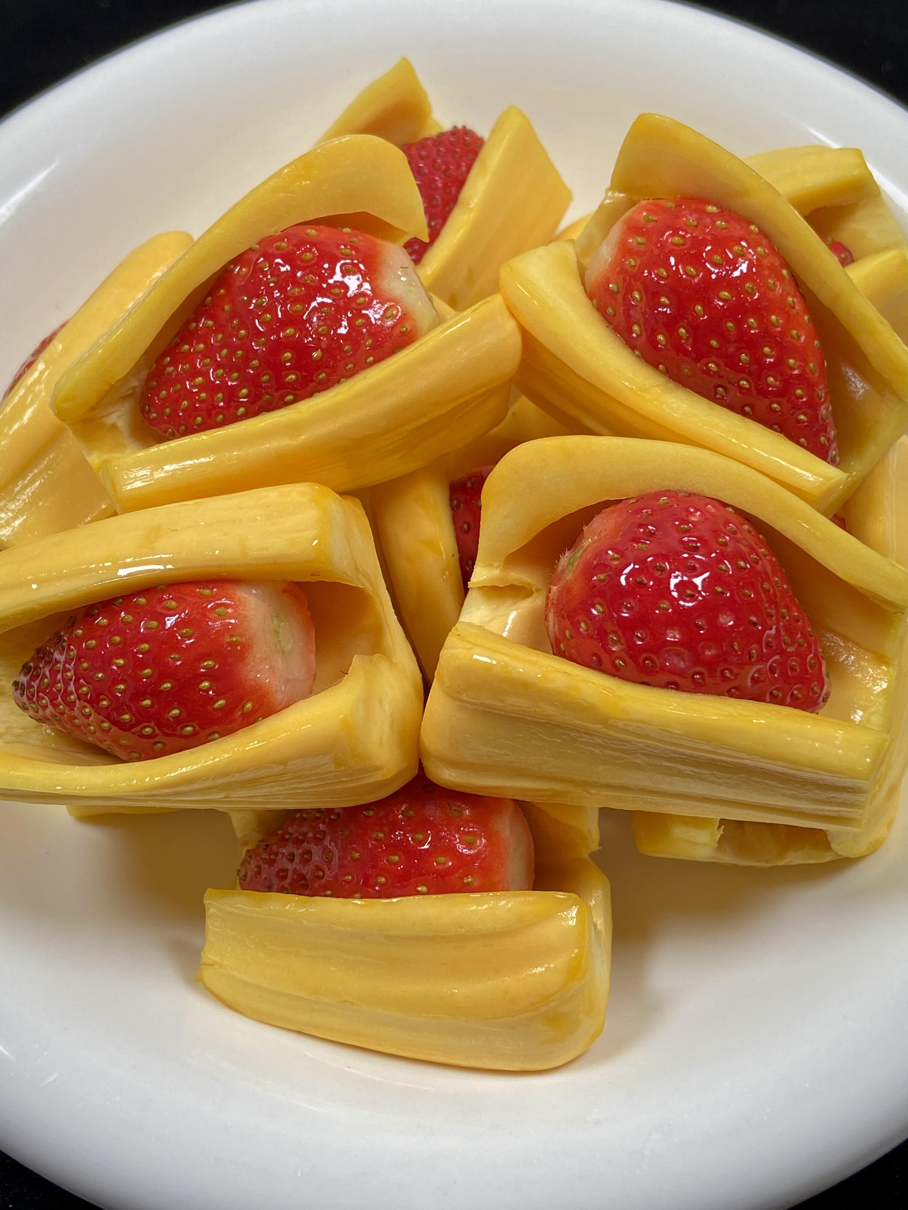 年夜饭桌上总是少不了几道让人眼前一亮的创意菜,今年我们家一致决定加入这道菠萝蜜夹草莓!菠萝蜜的香甜与草莓的酸甜完美融合,每一口都让人欲罢不能。果香四溢,甜而不腻,咬下去还会爆汁,简直是味蕾的极致享受!做法超简单,看图集就能轻松搞定,赶紧加入你的年夜饭清单吧!