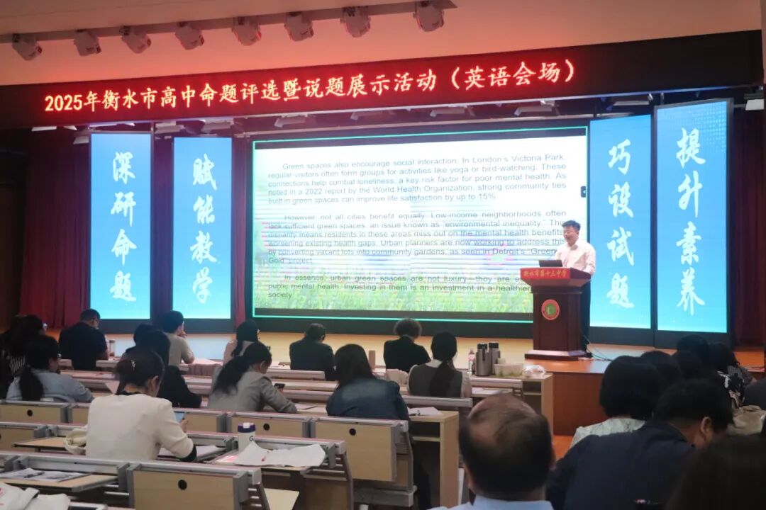 近日,由衡水市教育科学研究所主办、衡水十三中承办的 “2025 年衡水市普通高中命题评选暨说题展示活动(高中英语会场)” 圆满落幕。来自全市各普通高中的英语学科骨干教师齐聚一堂,以 “命题” 为桥、以 “说题” 为媒,共同探索核心素养导向下的命题创新路径与教学实践融合策略。