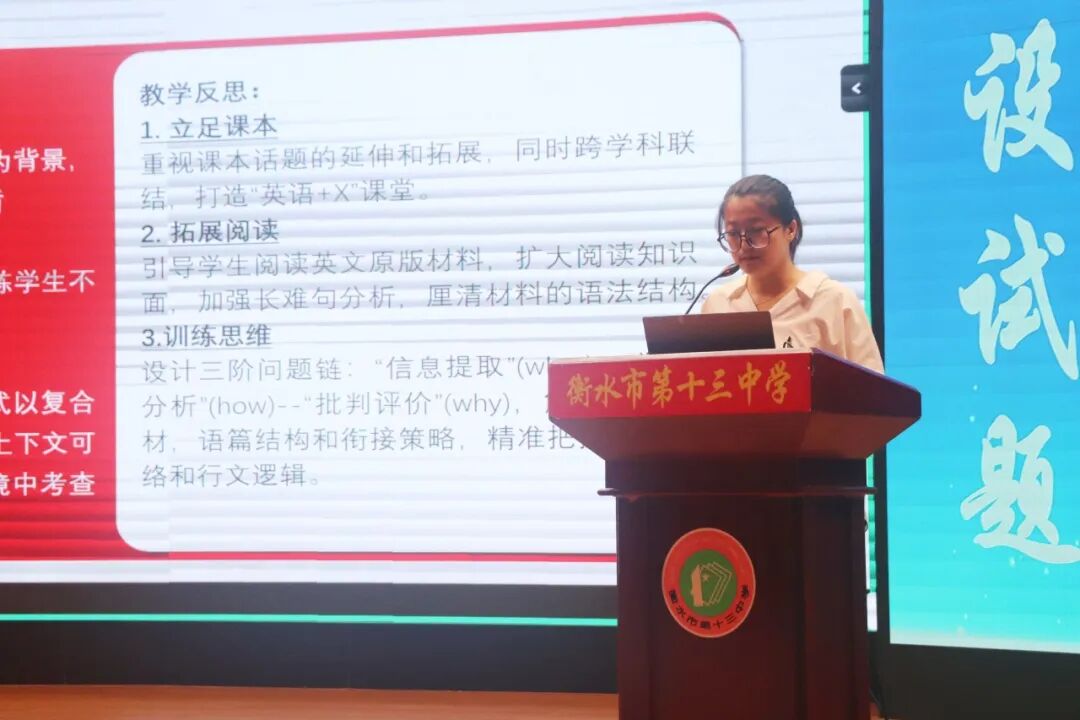 本次活动为全市英语教师搭建了交流提升的平台,有力推动了教师在命题研究与教学实践方面的深度融合,促进了教学与评价的科学化、专业化发展。衡水十三中将以此次活动为契机,持续深化教学改革,激发创新活力,建设一支高素质、专业化、创新型的教师队伍,为提升教育教学质量注入新动能。