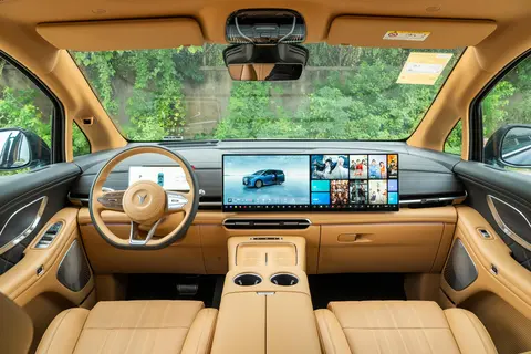 纯以车身体型而言,岚图梦想家尺寸不小,长5315毫米、宽1998毫米、高1820毫米,轴距达3200毫米。为了弥补大体量车笨重的传统印象,底盘调校做得颇为出色。车辆采用前双叉臂、后多连杆悬架结构,配备CDC可变阻尼减震器和空气悬架系统,这套配置令我在行驶过程中感受到极佳的驾乘舒适性和操控性。市区遇见坑洼或井盖,空气悬架出色地过滤了震动,车内几乎感受不到颠簸,后排乘客反馈更加稳固舒适。记得在一段碎石坑洼路面行驶时,车辆行驶平顺无跳动,悬架细致地吸收了外界冲击。高速路上表现同样令人满意,即使保持120公里/小时的速度行驶,在遭遇侧风时车辆依然贴合路面,没有明显漂移,让我开得安心。过弯速度提升,车身侧倾受控,悬架支撑充分,带来极大的驾驶信心。而后轮转向功能堪称点睛,支持5°转向角,使得车辆转弯半径明显减小。尤其是在狭窄小区或多次倒车穿行的情况,这项功能极大提升了通过效率。停车入位时,感受到了转向灵活带来的便捷,就算是新手司机也能很快适应。