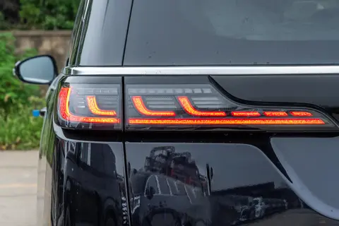车侧线条流畅平直,没有采用流行的溜背设计,以保证二排和三排乘员头部空间充裕,乘坐老人时头部无需压低。悬浮式车顶通过黑色饰条连接A柱到C柱,视觉上营造轻盈时尚感。车尾设计简洁不失动感,配备尺寸较大的扰流板,增加高速行驶时下压力,提升稳定性。扰流板中央藏有高亮高位刹车灯,有效增加后车反应时间,减少追尾风险。
