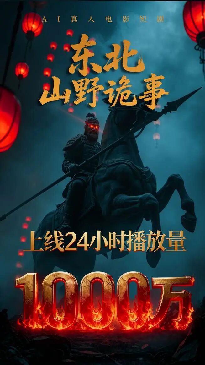 几天之后(11月22日),公司旗下另一部时长70分钟,制作更精良的竖屏AI真人短剧《东北山野诡事》上线了。目前,原生端播放超过2074万,付费人数超过3.2万。