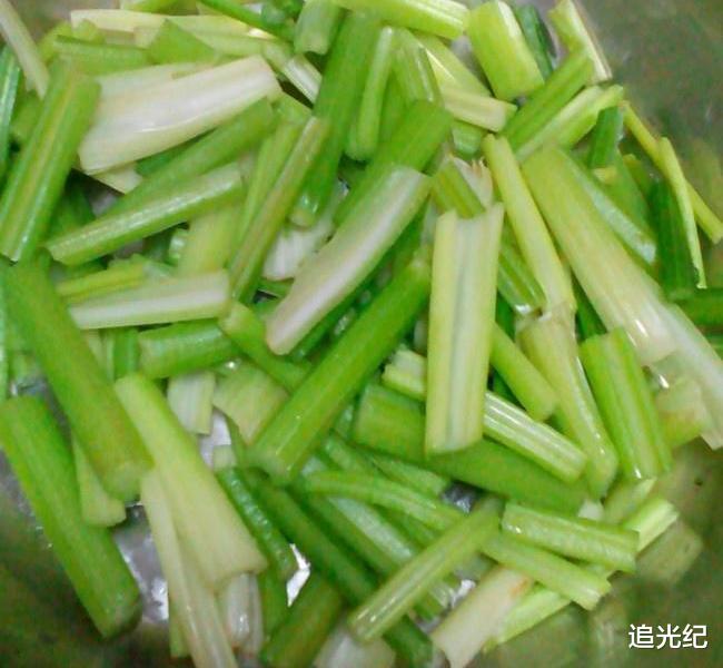 选一把新鲜芹菜(西芹或本地芹菜都行,挑茎秆饱满、叶子翠绿的),去掉根部和老叶,把茎秆外侧的老筋撕掉(撕完口感更嫩),斜切成 5 厘米长的段(或切丝,看你喜欢)。锅里烧开水,加 1 小勺盐和几滴香油(保持颜色翠绿),放芹菜段焯 15 秒(别焯太久!变深绿立刻捞出来),马上过冰水(没有冰水用凉白开加冰块,脆爽的关键!),泡 2 分钟后捞出沥干水分(一定要挤干,不然料汁会被冲淡)。
