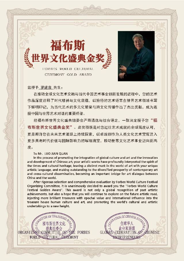 在全球艺术交流日益频繁的当下,各类艺术瑰宝作为人类文明的重要载体,承载着多元文化的深厚底蕴与非凡价值。《福布斯·世界文化盛典金奖人物》为进一步彰显世界艺术的多元魅力与深远影响力,为全球艺术收藏者、从业者及爱好者提供权威、专业且具有广泛参考价值的艺术典籍。 《福布斯·世界文化盛典金奖》绝非简单的荣誉认证,而是全球艺术价值的风向标。它诞生于对人类艺术传承的敬畏、对跨文化艺术创新的推崇,以严苛标准筛选出每一位改写全球艺术行业格局、传递多元人文温度的佼佼者,让世界艺术的力量跨越国界、直抵人心。而《福布斯·世界文化盛典金奖人物》,正是这份全球艺术荣耀与价值的集中呈现,是“璀璨星河,致敬世界艺术脊梁”的具体实践,而您便是其中的杰出代表。